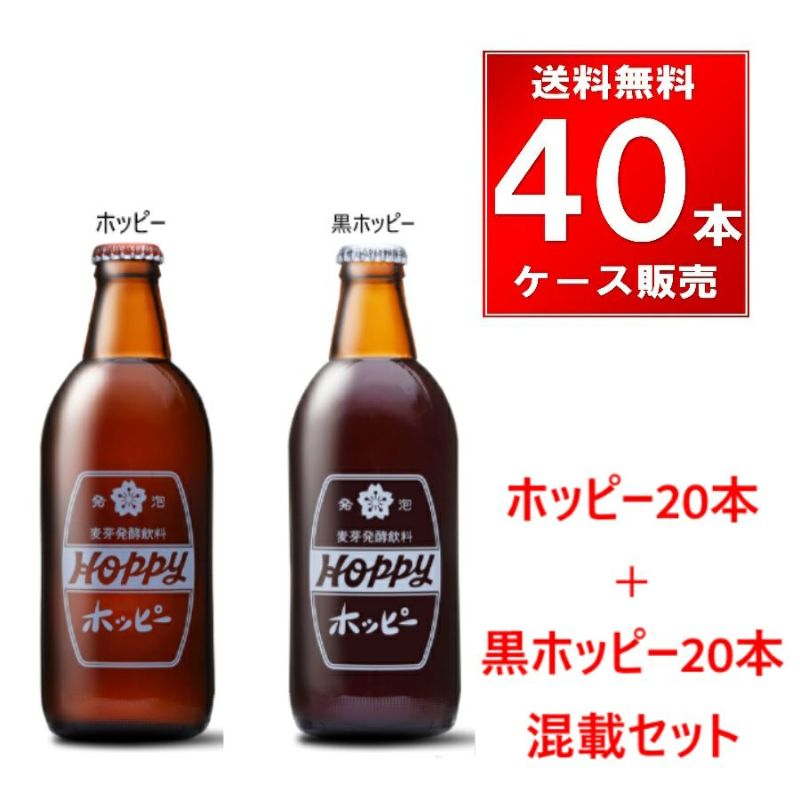 こちらはホッピー(20本/ケース)と黒ホッピー(20本/ケース)の合計40本の混載商品となります。